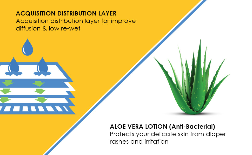 - Super Absorbent Gel Core quickly locks fluids and helps eliminates odour